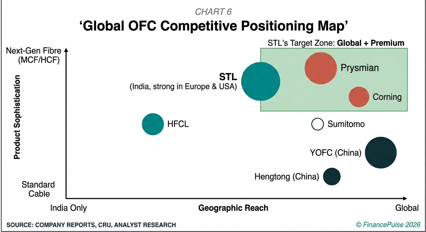 HFCL (india): The second-largest indian optical fibre cable manufacturer. hfcl has also backward-integrated into fibre drawing and is a direct competitor for indian telecom operator contracts. However, hfcl does not have stl’s international scale or the italy/usa manufacturing presence.